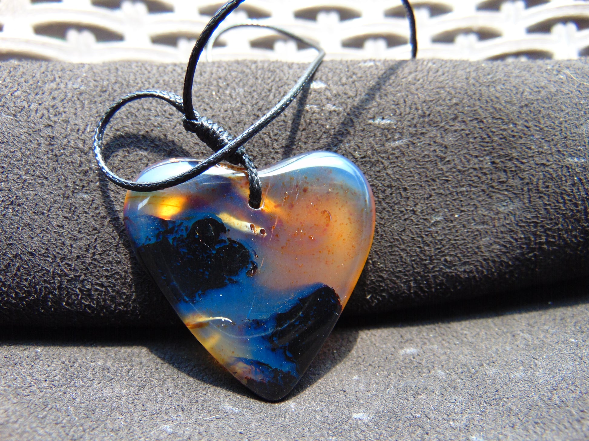 7 gr Heart Pendant Indonesian Black Blue Amber for Healing 25A255
