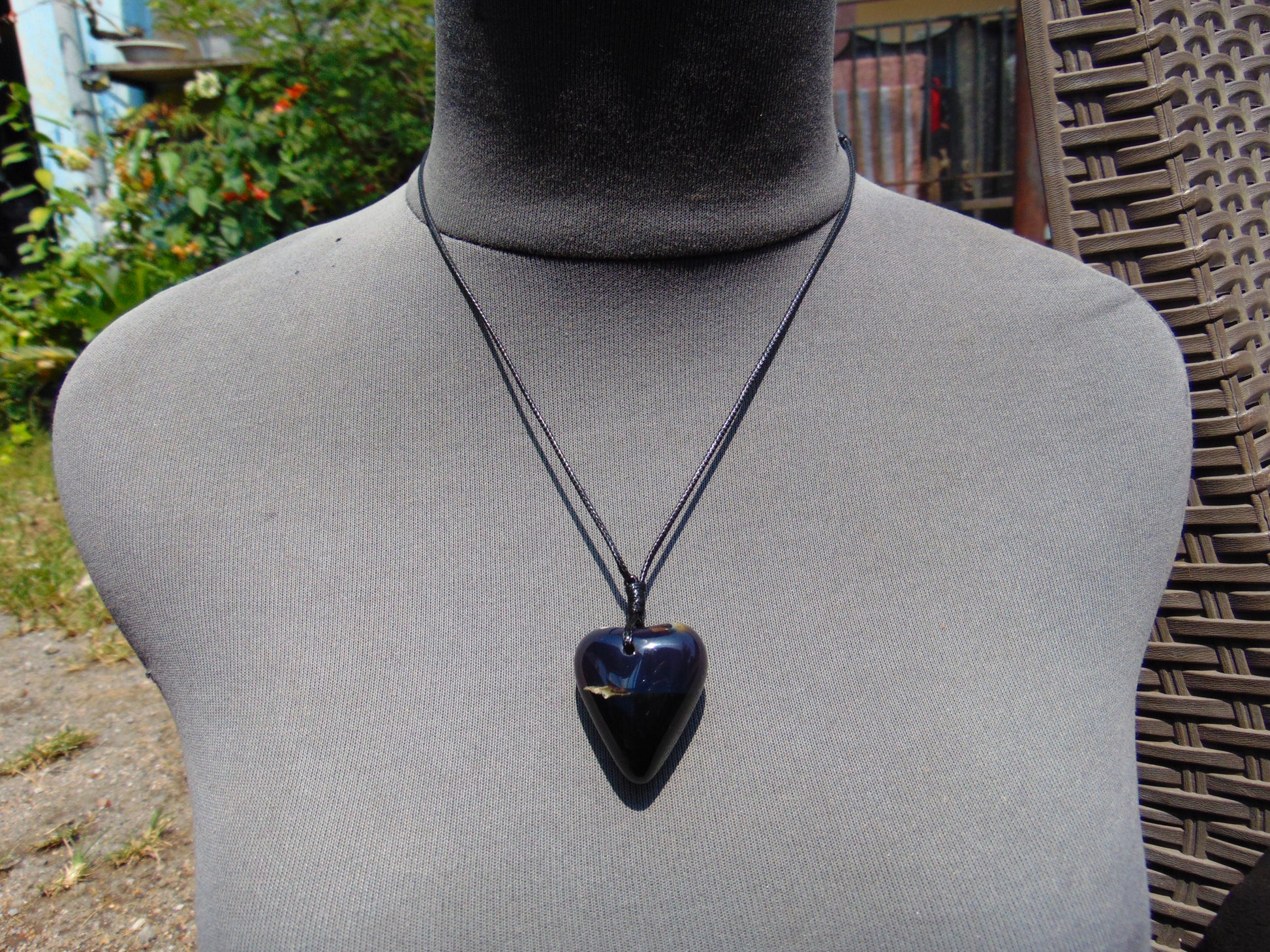 10 gr Heart Pendant Indonesian Black Blue Amber for Healing 25A339