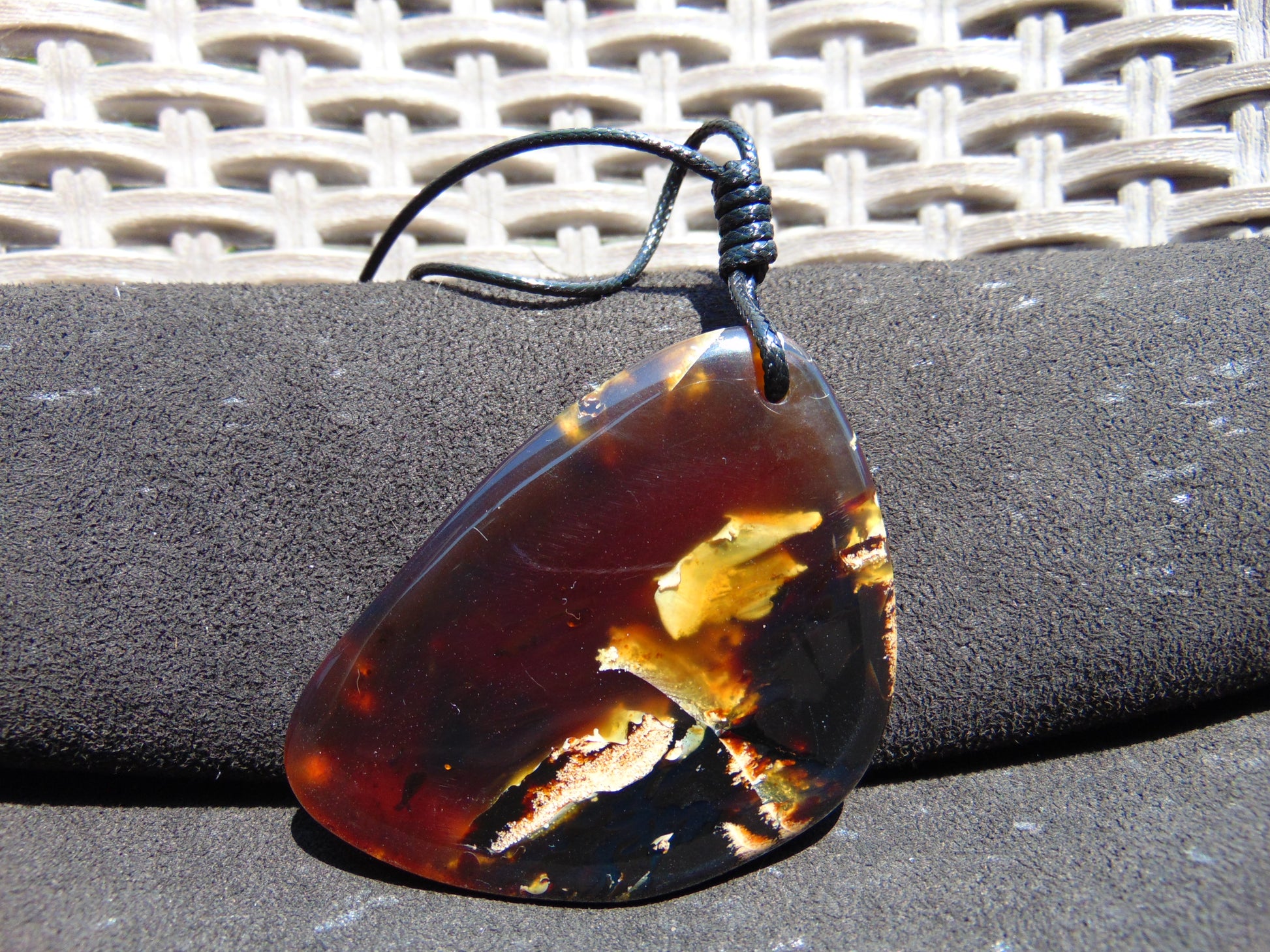 - "Natural & Unique Materials": Each amber pendant has natural patterns and inclusions that make it unique.