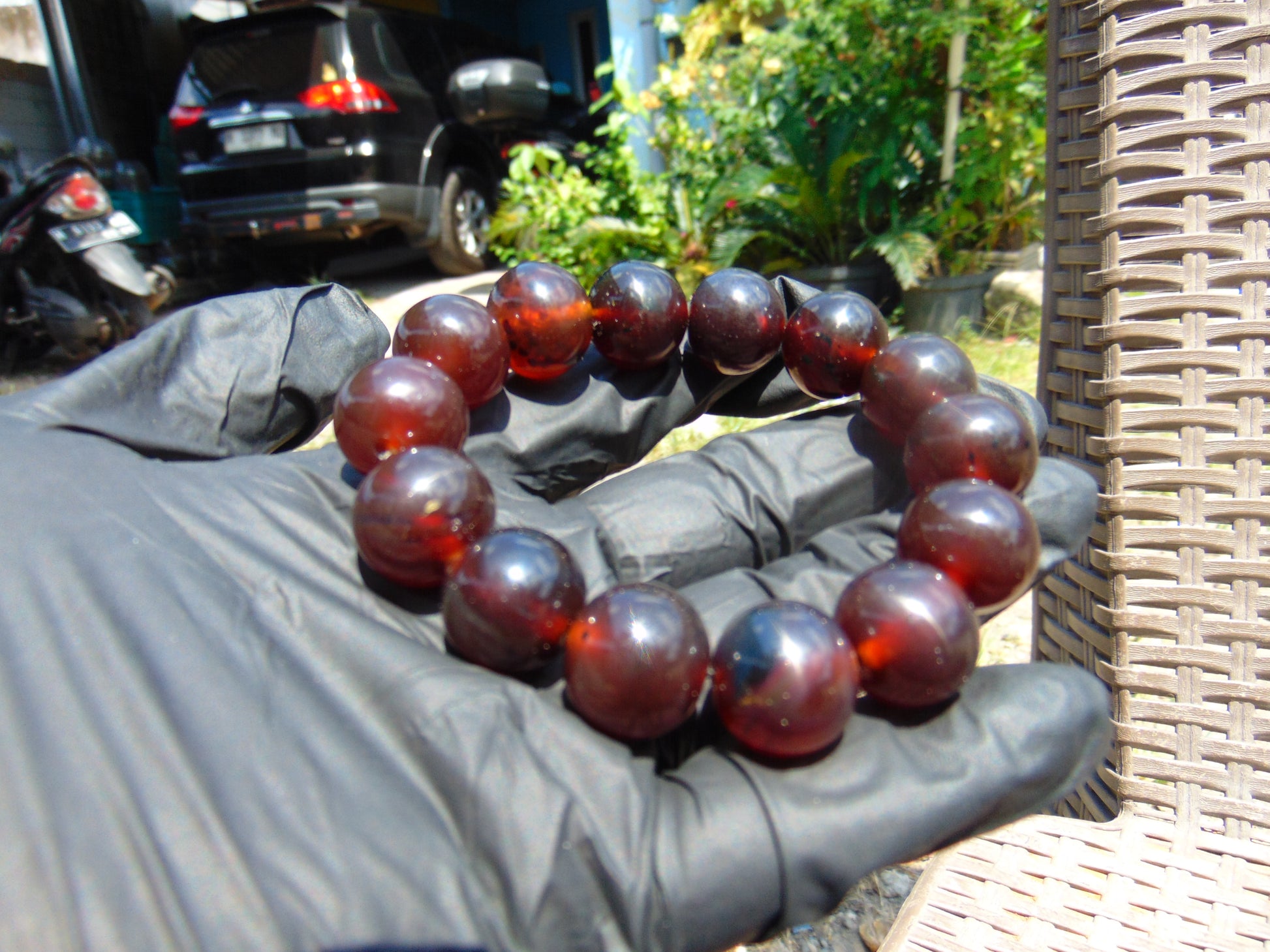 31 gram 14 Beads Mala Bracelet Indonesian Cherry Red Amber 16 mm for Healing FRB5
