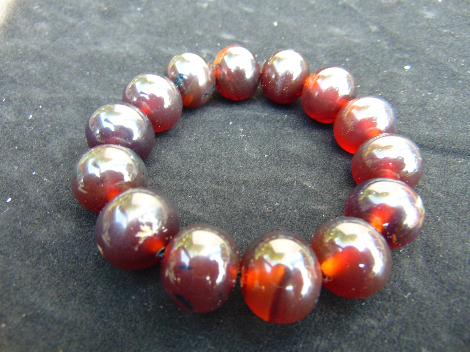 35 gram 14 Beads Mala Bracelet Indonesian Blue Cherry Red Amber 16 mm for Healing A14G275