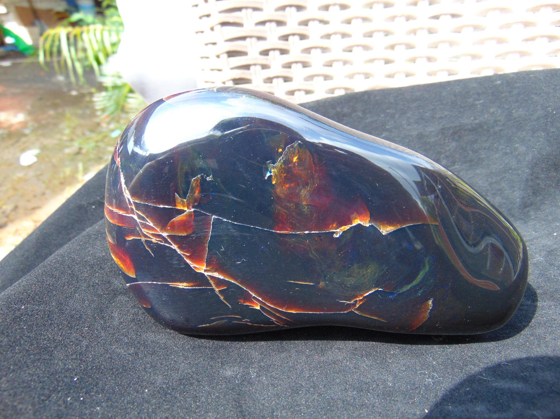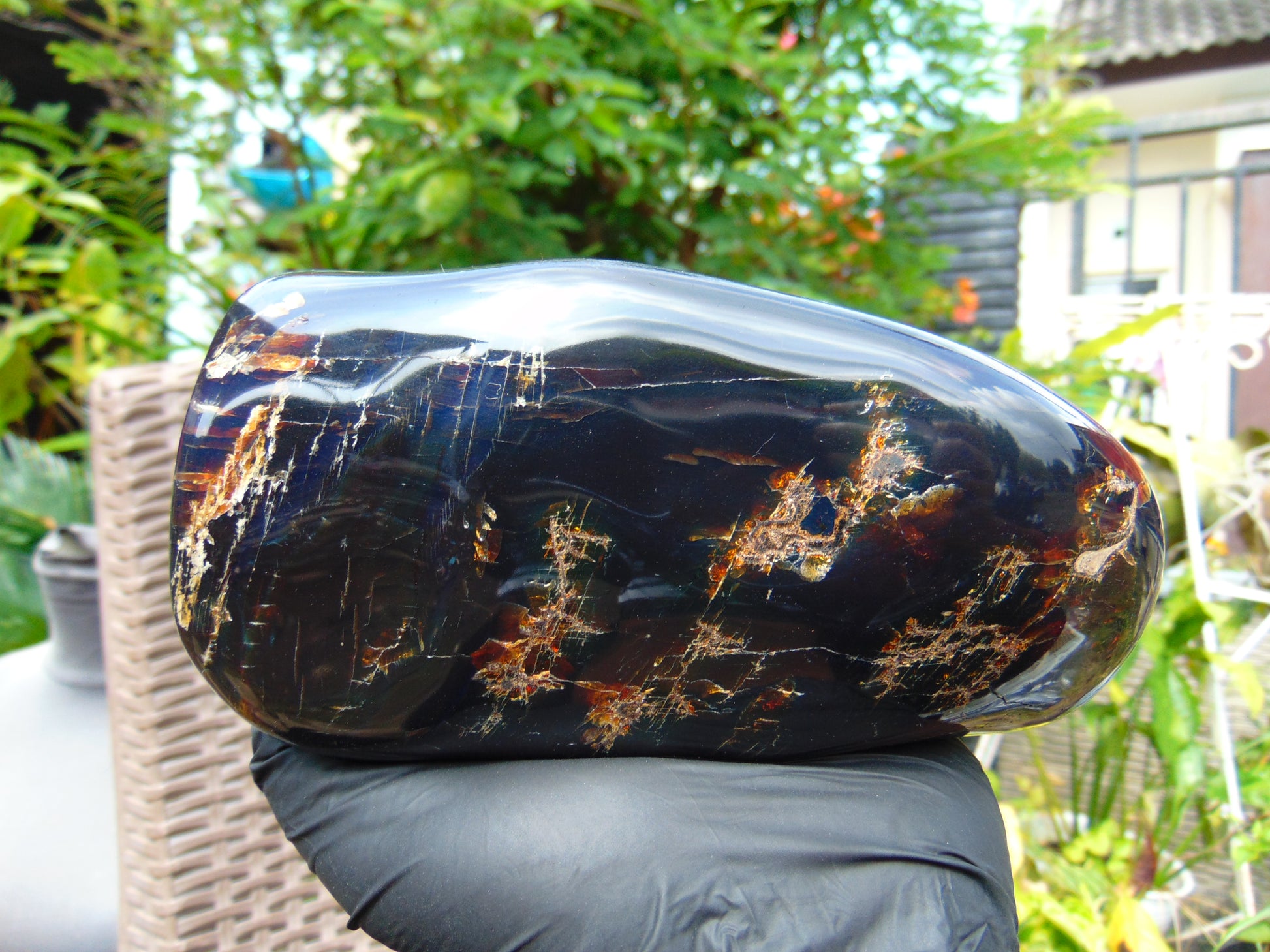 495 gr Full Polished 160x76x75 mm Indonesia Black Blue Amber for Healing ML161