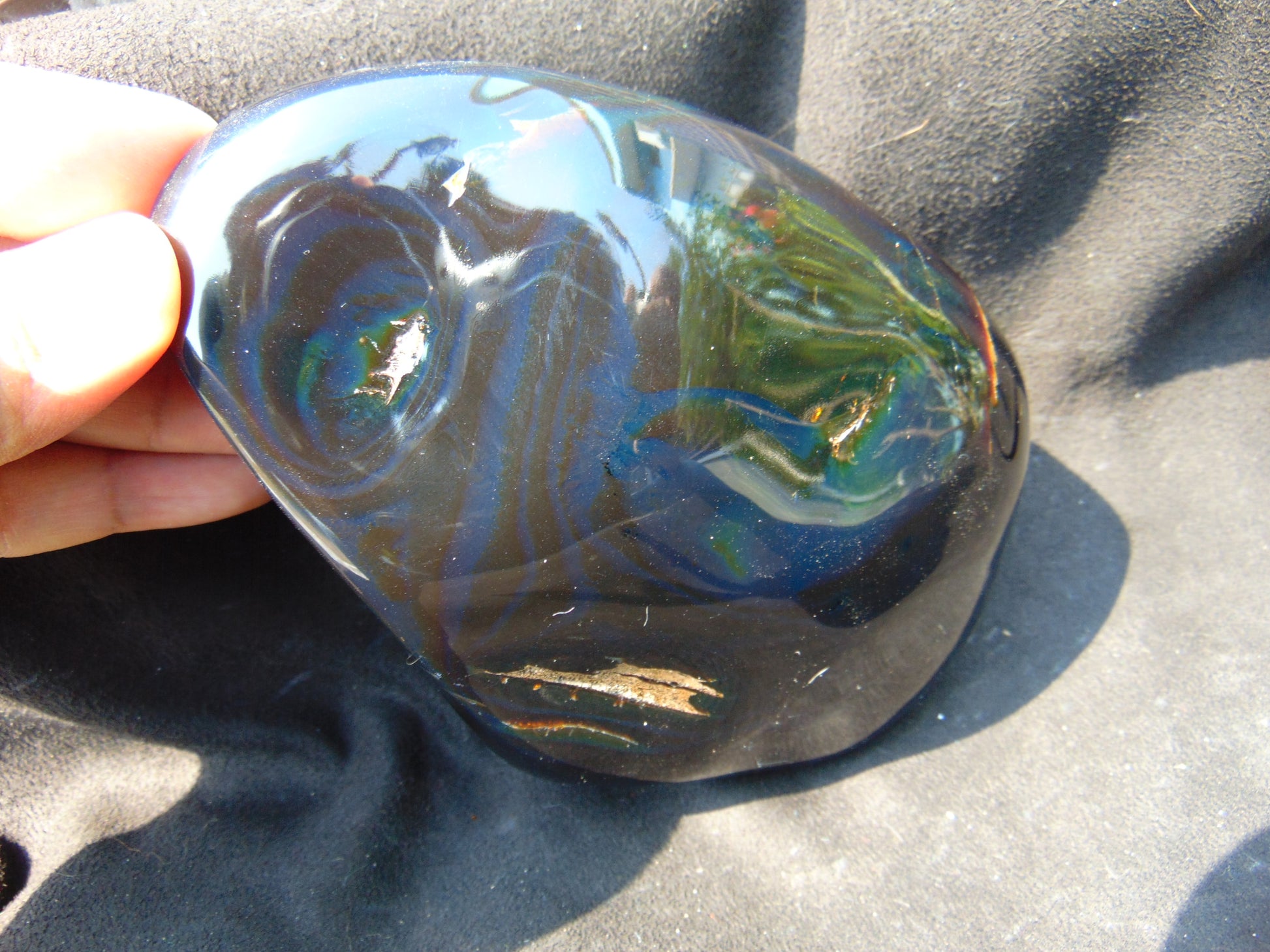 376 gr Blue polished 147x104x50 mm Indonesian Amber for Healing AJ1020