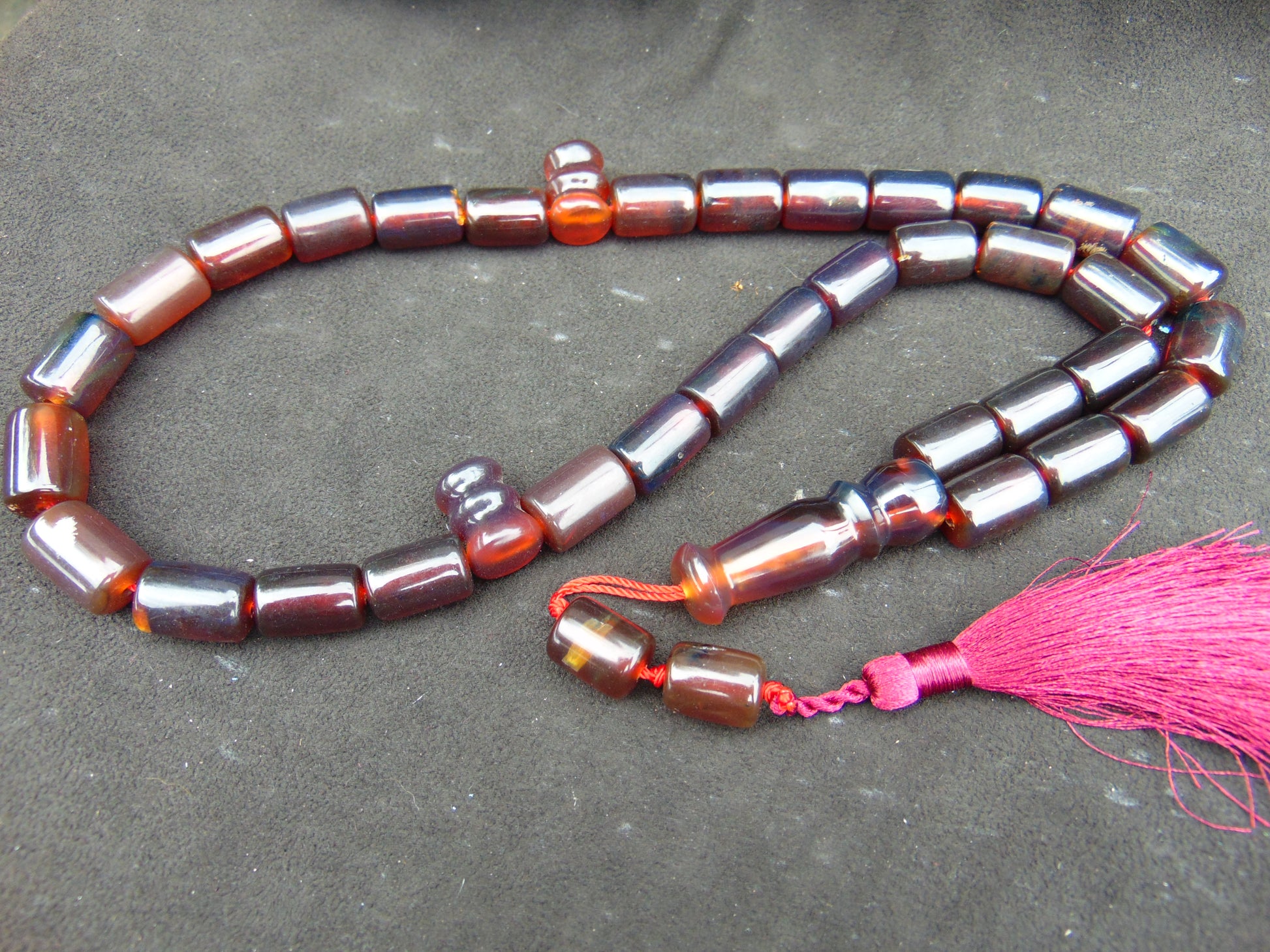 78 gr Komboloi Rosary 33+2 Beads 13x18 mm Indonesian Dark Red Amber for Healing TT25